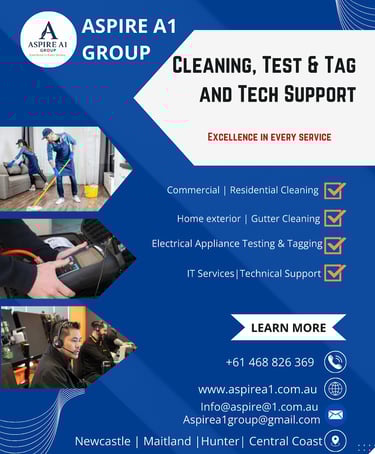 Your trusted partner for cleaning, Testing & Tagging, and IT support services in Maitland, Newcastle, Cessnock, Hunter, Central Coast NSW.